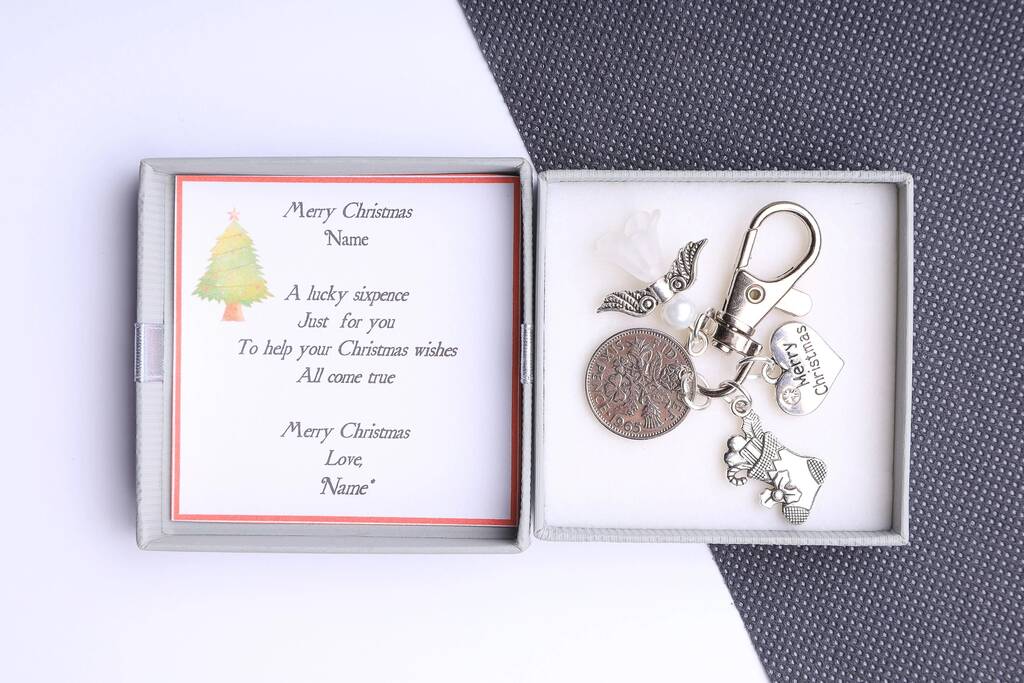 Lucky Sixpence Christmas Charm Keyring