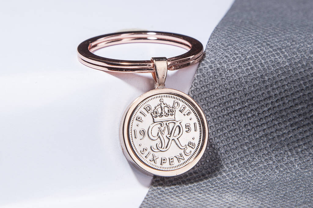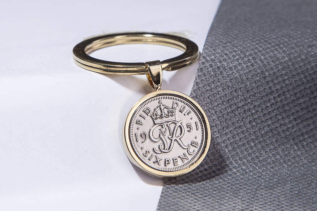 1951 75th Birthday Sixpence Coin Keyring Gift