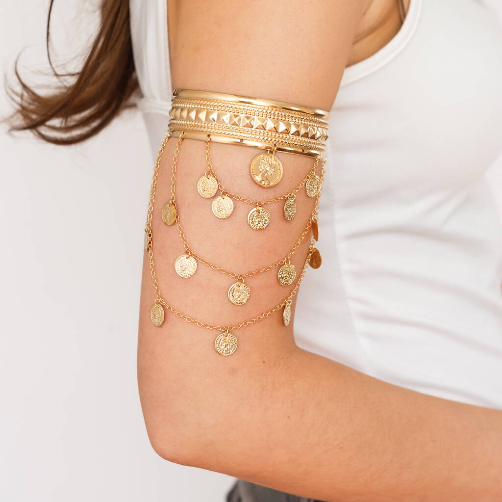 Bohemian Gold Plated Layered Coin Upper Arm Cuff