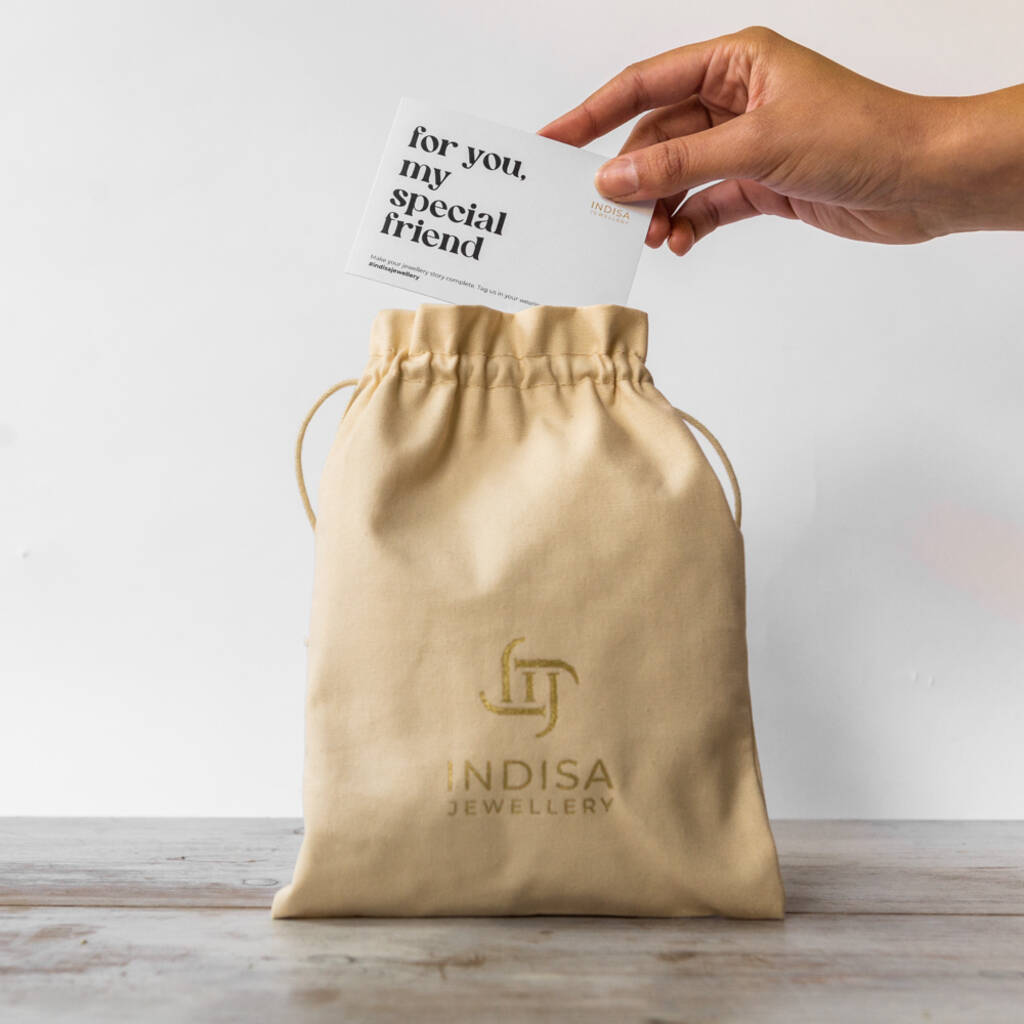 Indisa jewellery will be lovingly hand wrapped and packaged within our letterbox and eco-friendly signature boxes for that extra special unboxing experience.
