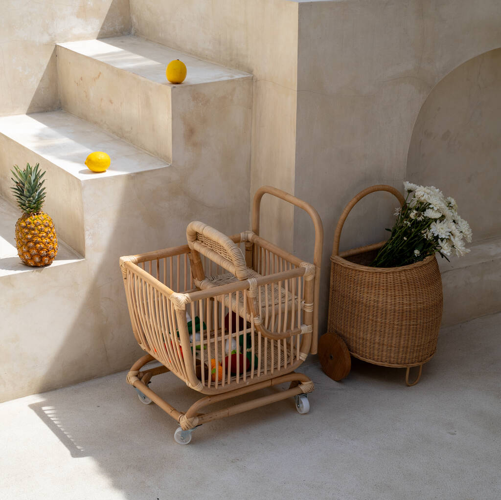 Rattan Toy Shopping Trolley – Pretend Play Cart