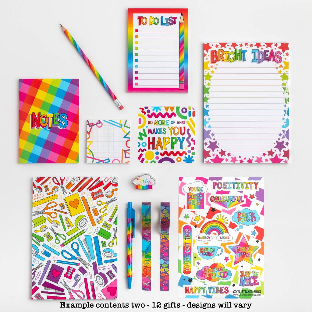 A vibrant rainbow stationery set - full of fun and colourful stationery items!