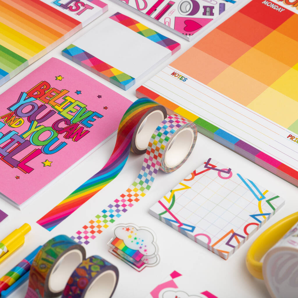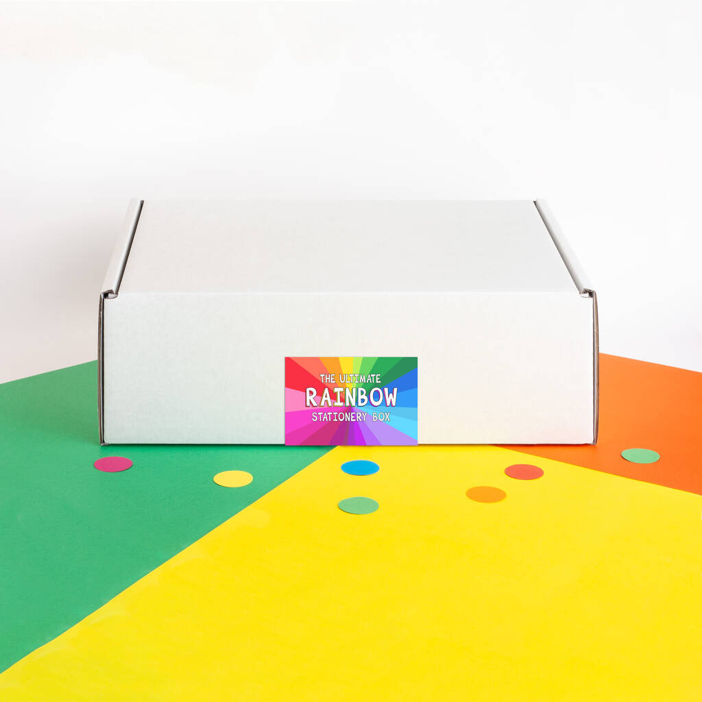 A fun and colourful RAINBOW stationery box - it really is the ULTIMATE stationery bundle!