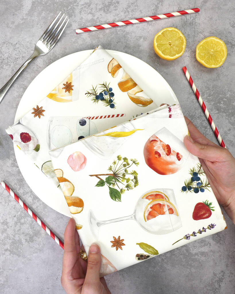 Gin And Tonic Napkin Set | Gift For Gin Lovers | Cotton Napkins Set Of Four