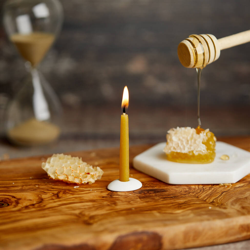 Twelve pure beeswax candles and ceramic holder for relaxation and well-being. Presented in a beautiful gift box.
