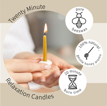 The perfect way to show you care.Twelve pure beeswax twenty minute relaxation candles and ceramic holder. Presented in a beautiful gift box.