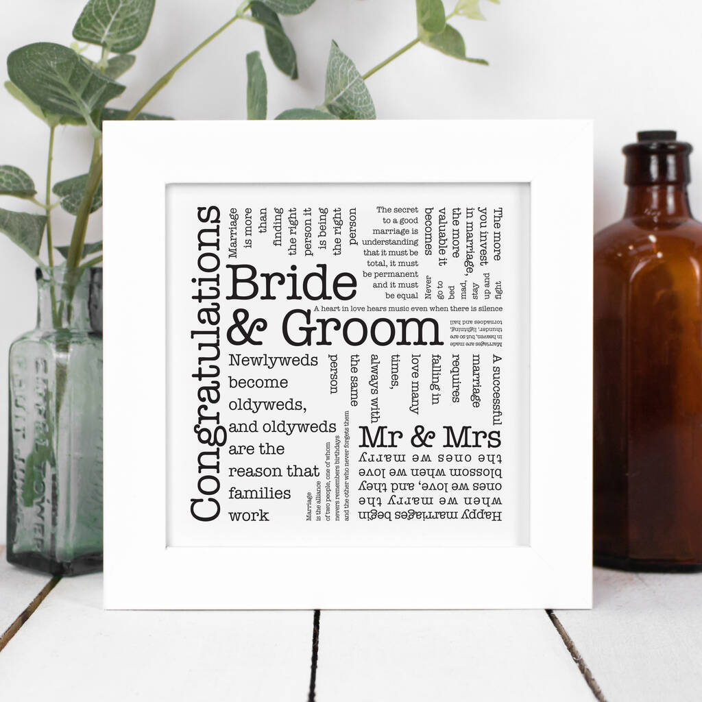 Framed Bride And Groom Print In Gift Box, Wedding Gift