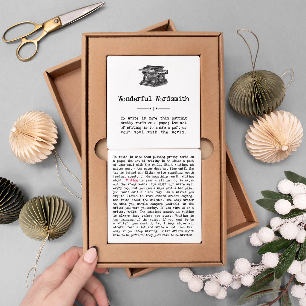 Set Of Two Ceramic Writers Coasters In Gift Box
