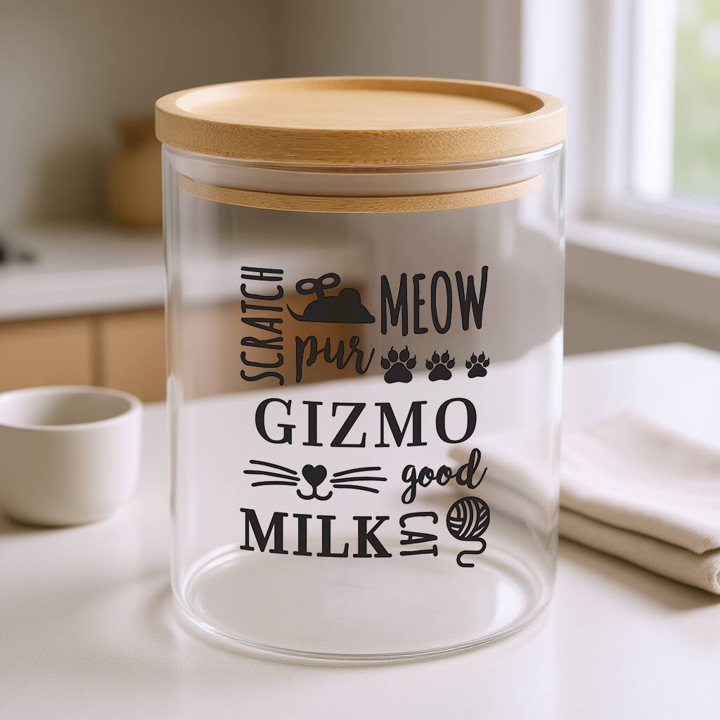 Cat Treats Personalised Glass Jar Bamboo Lid