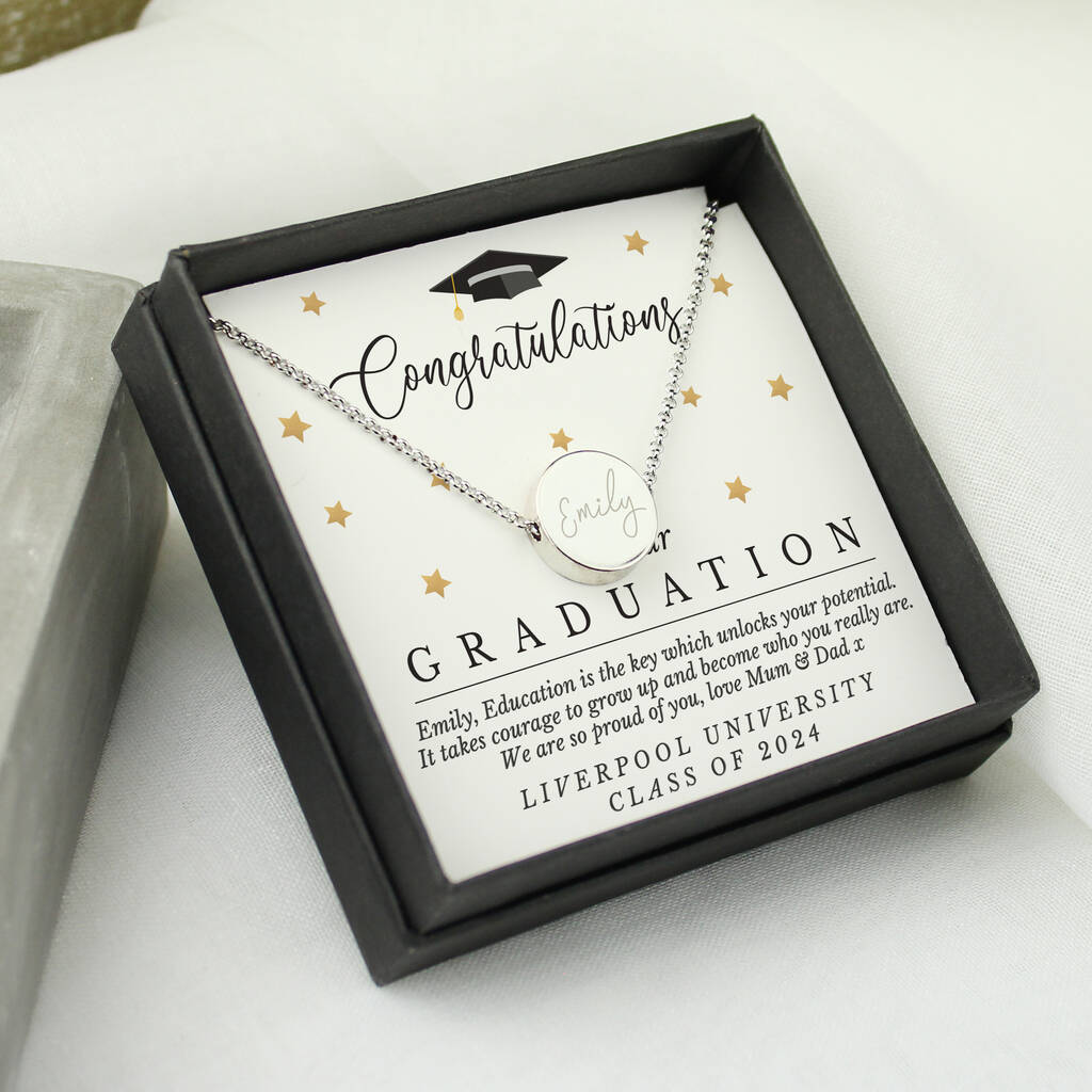 Graduation Silver Tone Necklace And Sentiment Box