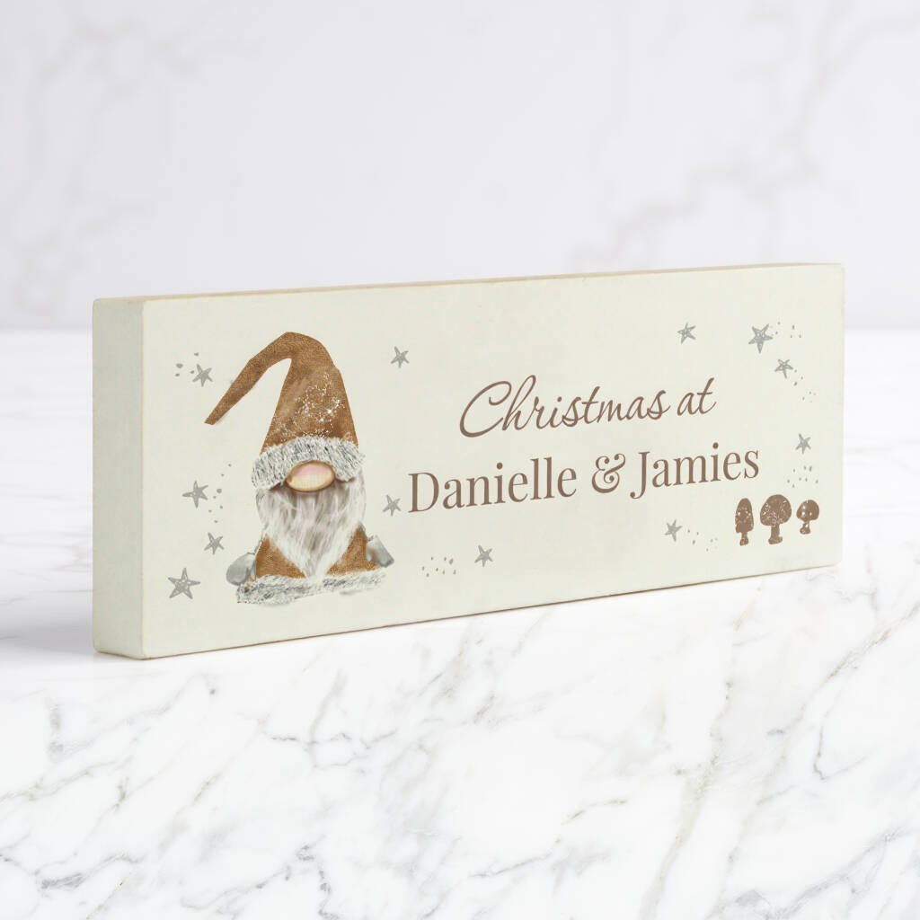 Personalised Christmas Gonk Wooden Mantel Decoration