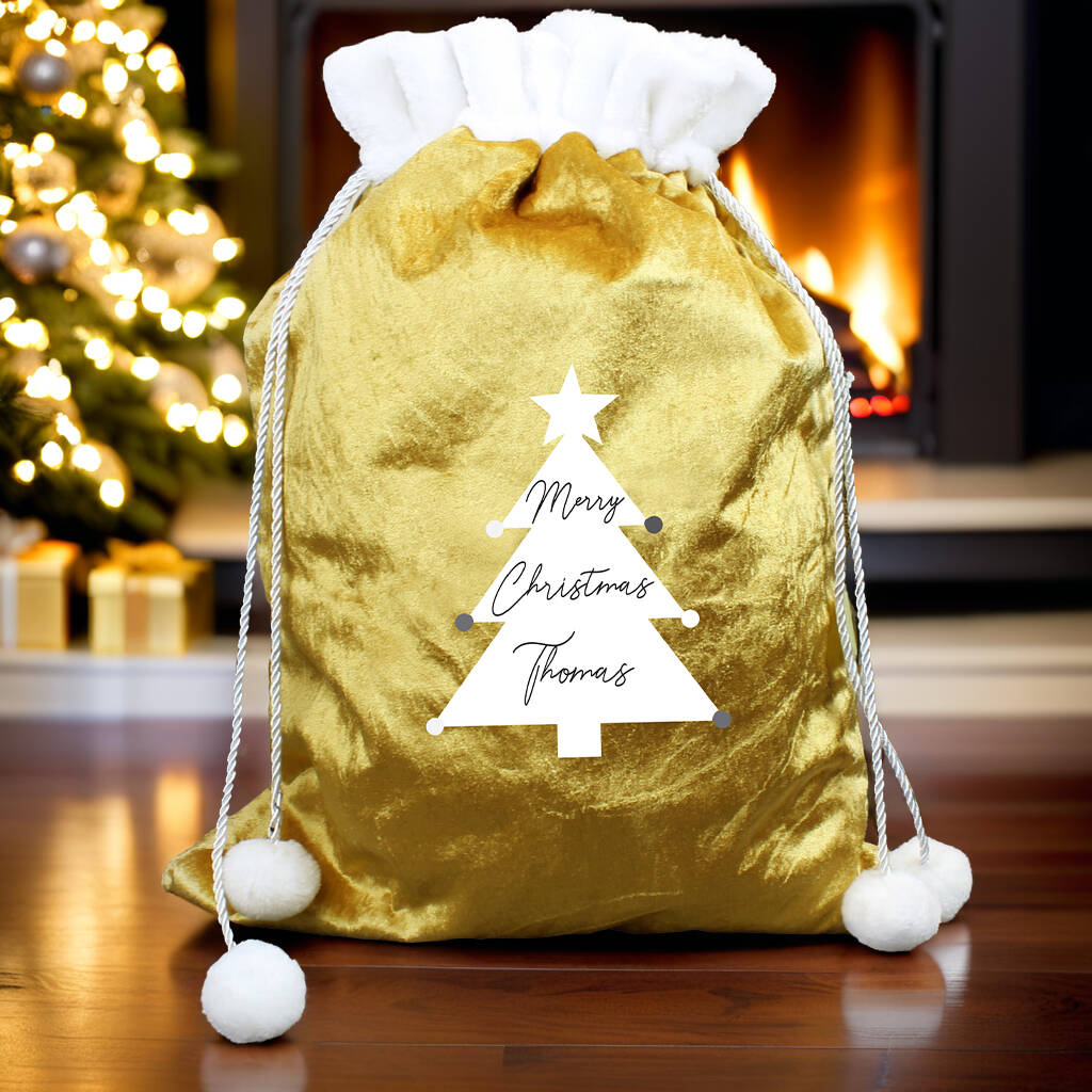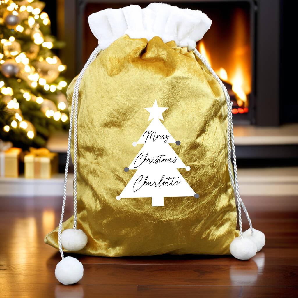 Personalised Christmas Tree Luxury Pom Pom Gold Sack