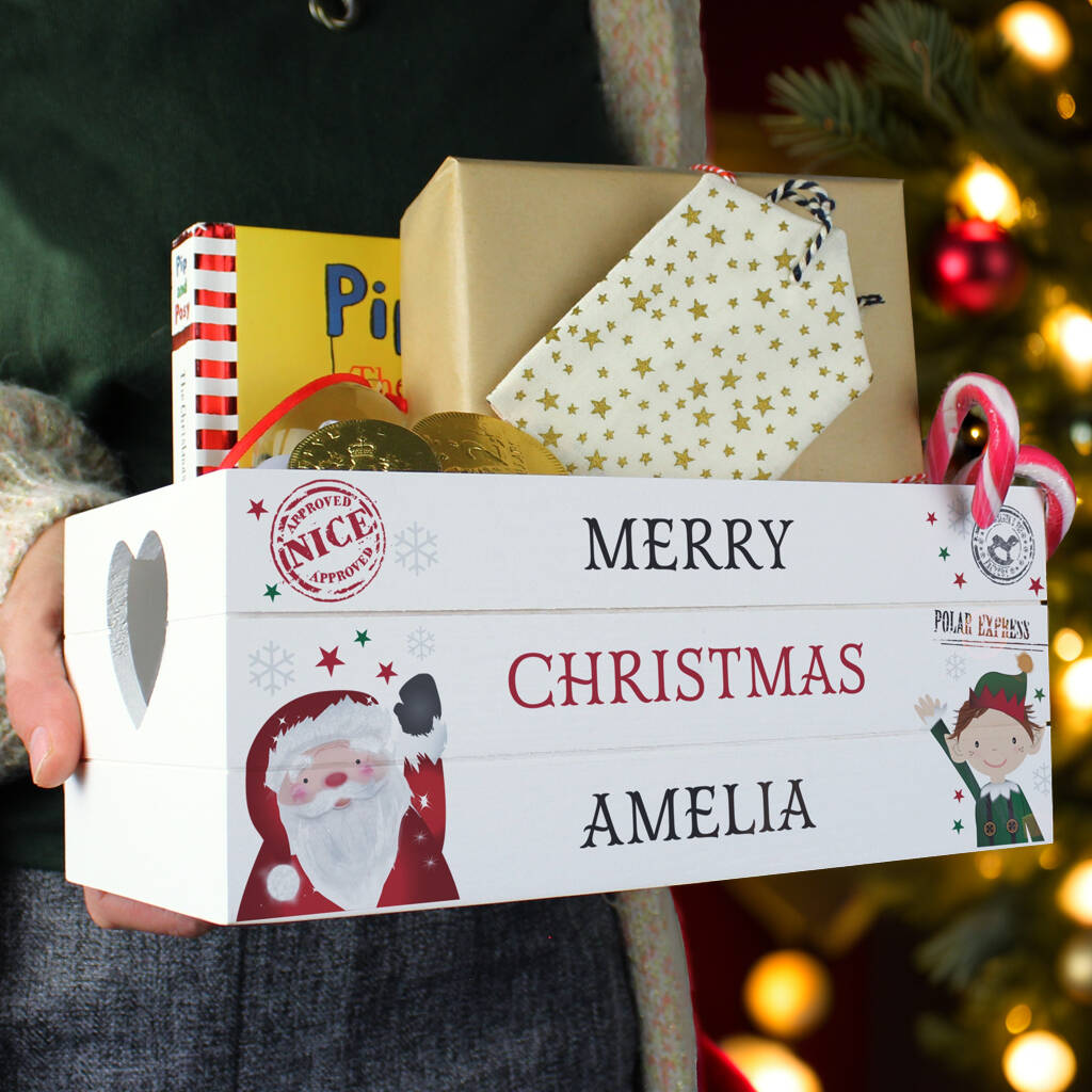 Personalised Christmas White Wooden Crate