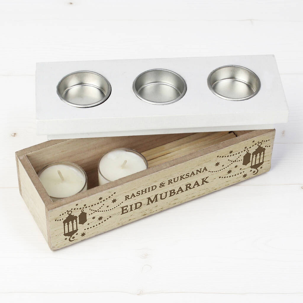Personalised Eid And Ramadan Triple Tea Light Box Tealight