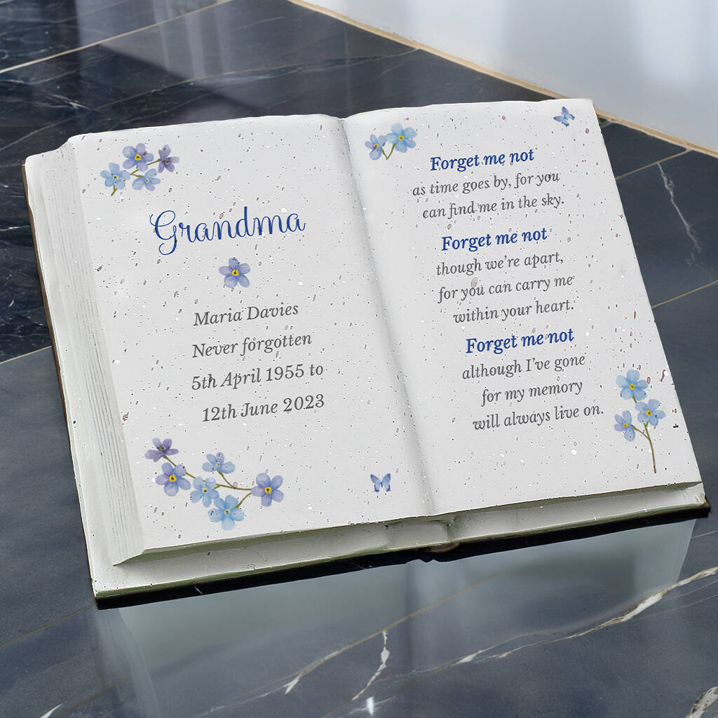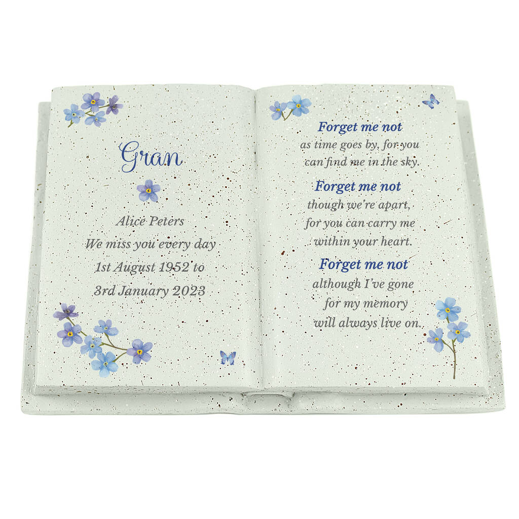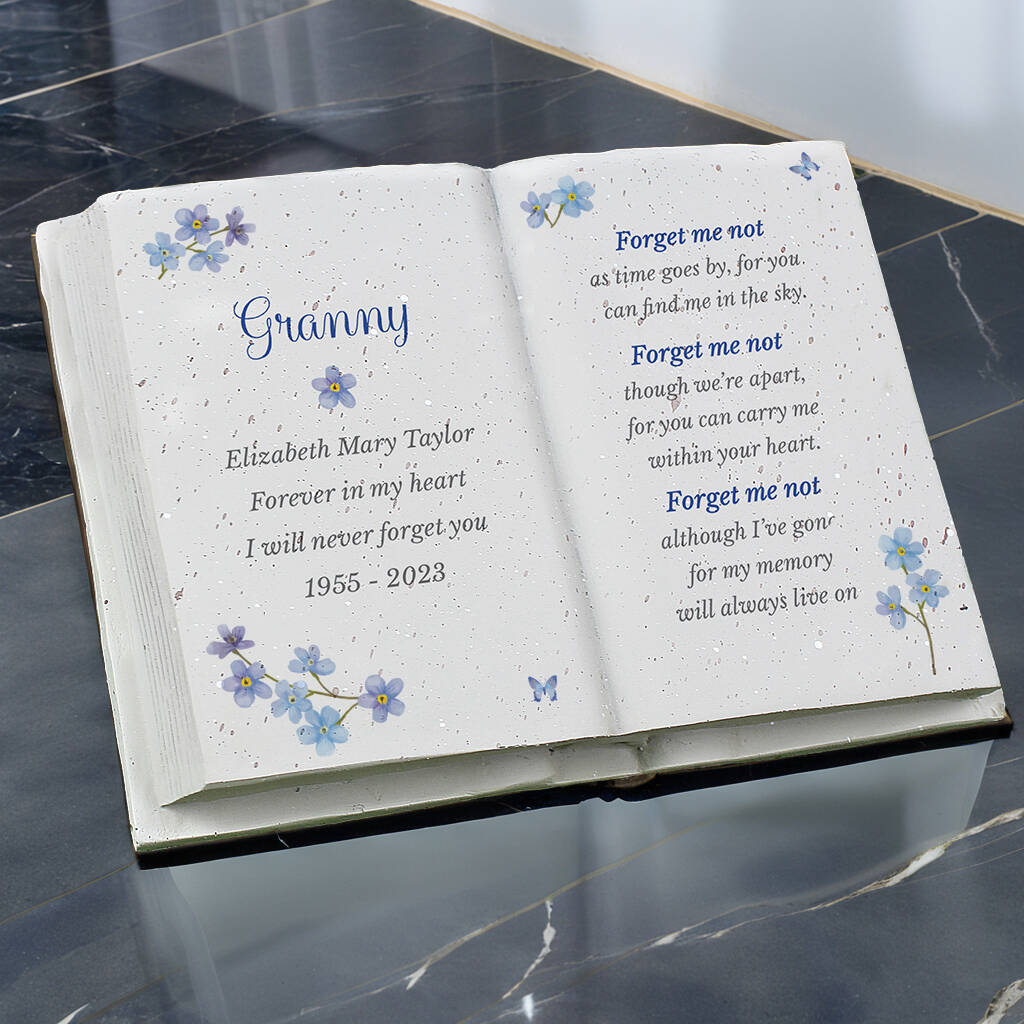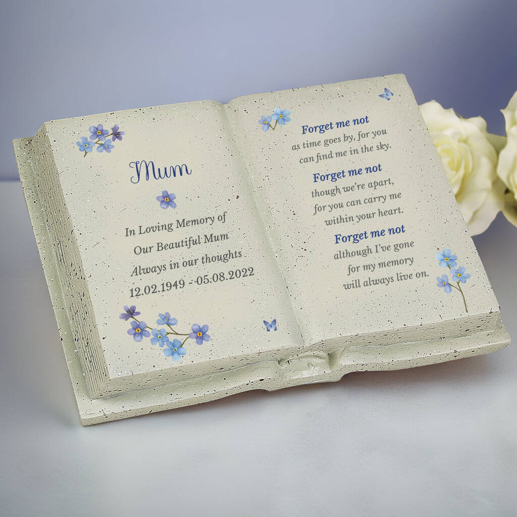 This memorial keepsake is crafted from resin and personalised within the character limits shown to honour a loved one. Featuring a dedicated area for names and a short message, it’s designed for quiet reflection at home. Please follow the letter‑case guidance, especially where script fonts are used, to ensure the wording appears clearly. A thoughtful piece to commemorate life and love with lasting dignity.All personalisation is case sensitive and will appear as entered. Please refrain from using fixed uppercase as this can make the script font difficult to read.The poem reads:"Forget me not,as time goes by, for youcan find me in the sky.Forget me notthough we're apart,for you can carry mewithin your heart.Forget me notalthough I've gonefor my memorywill always live on."Please note that each ornament is crafted from a natural resin material. This may result in blemishes appearing on the area of personalisation. It may feature small imperfections, all of which add to its own unique character!