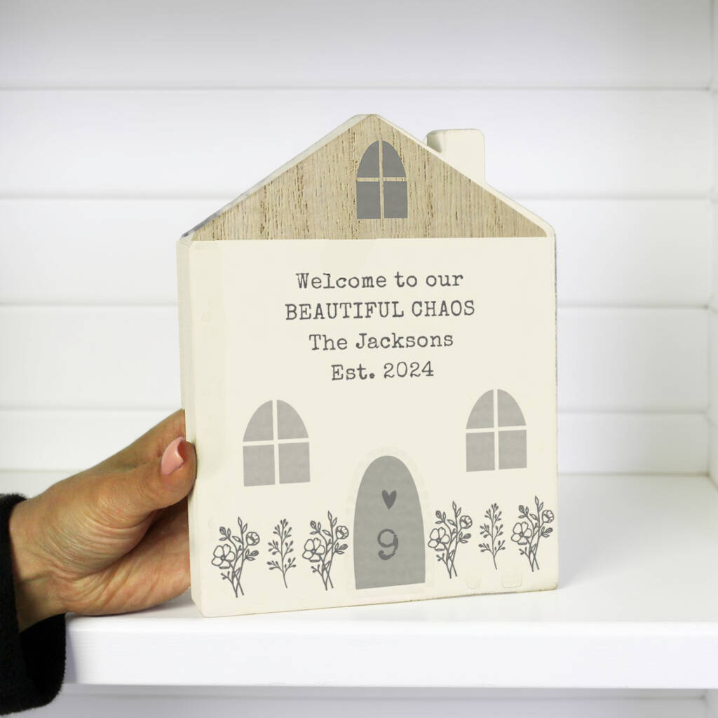 Personalised Grey Wooden House Ornament