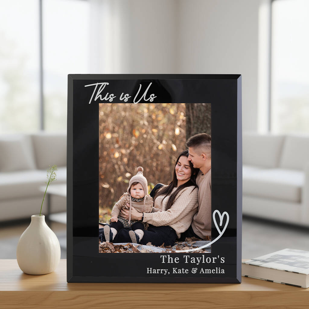 Personalised Heart Black Glass Frame 7x5