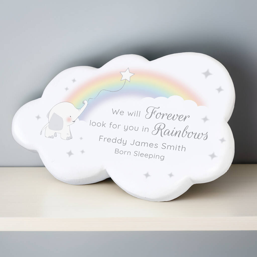 Personalised Rainbow Elephant Cloud Memorial Resin Ston