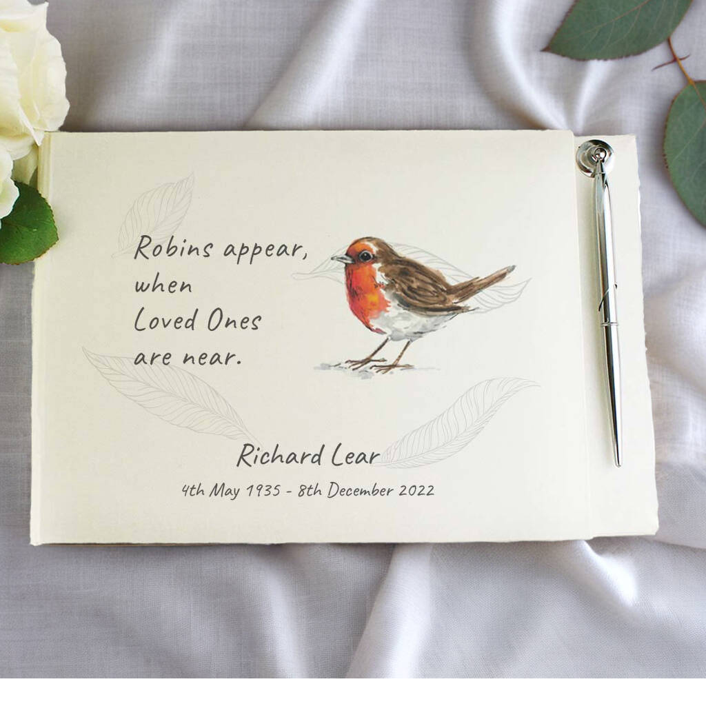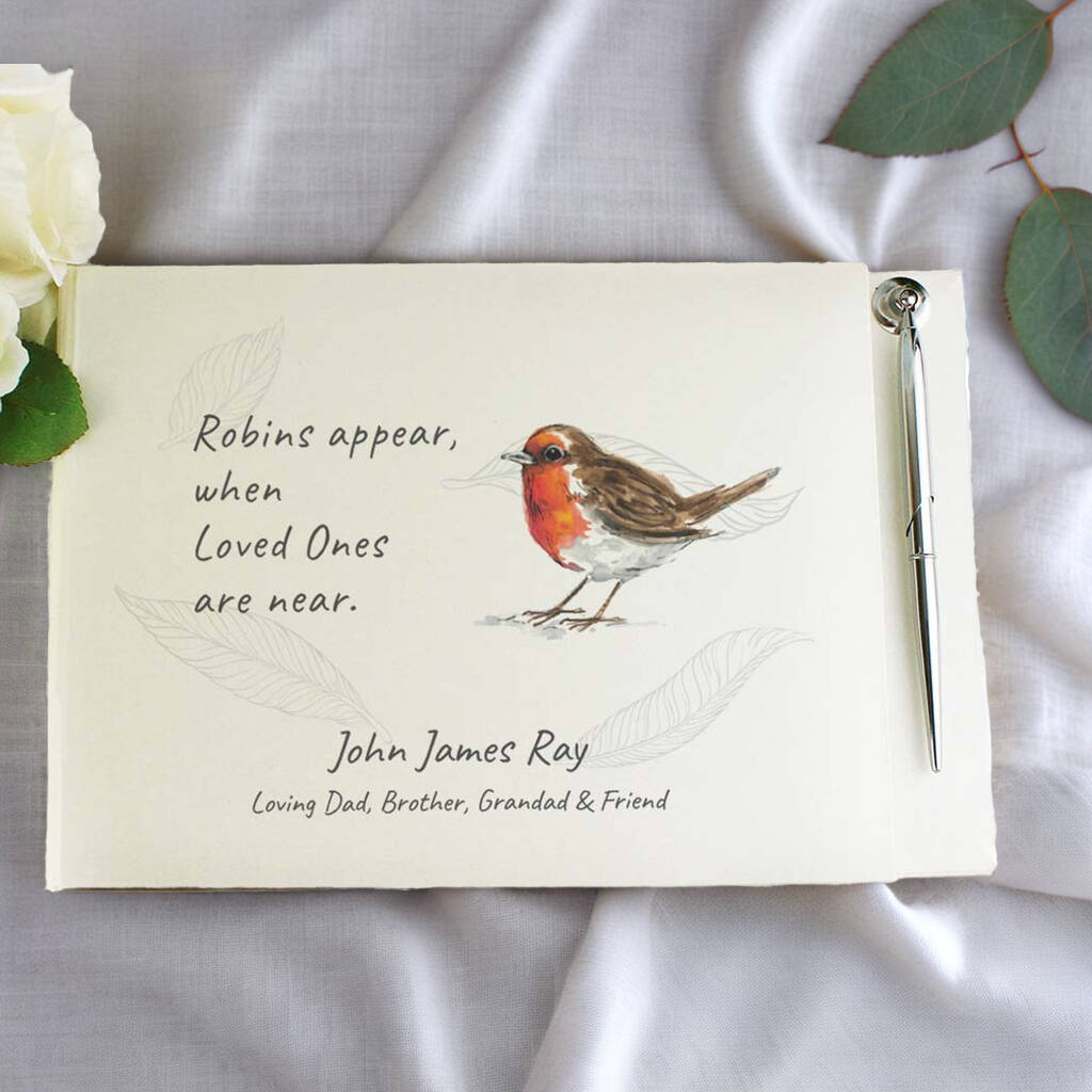 Personalised Robins Appear Condolence Guest Book