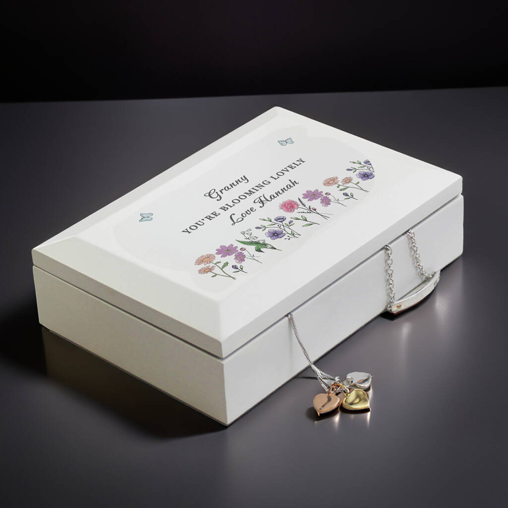 Personalised Wild Flowers Wooden Jewellery Box