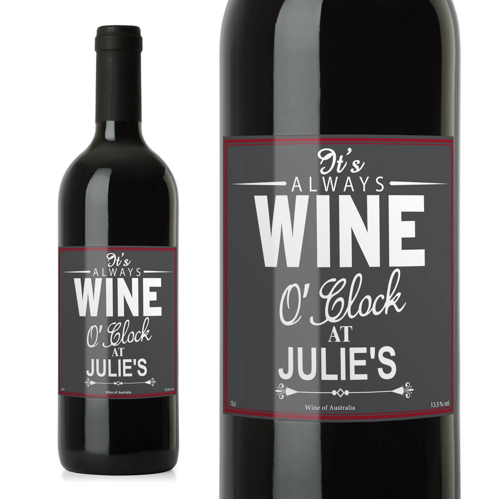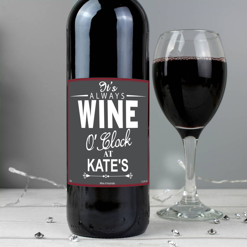 The words ''It's ALWAYS WINE O'Clock AT'' are fixedThe name will be personalised in capitals. Please enter a '' 's'' after the name, as this is not fixed.