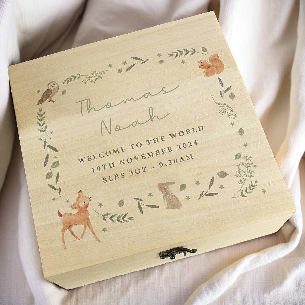 Personalised Woodland Animal Large Wooden Keepsake Box