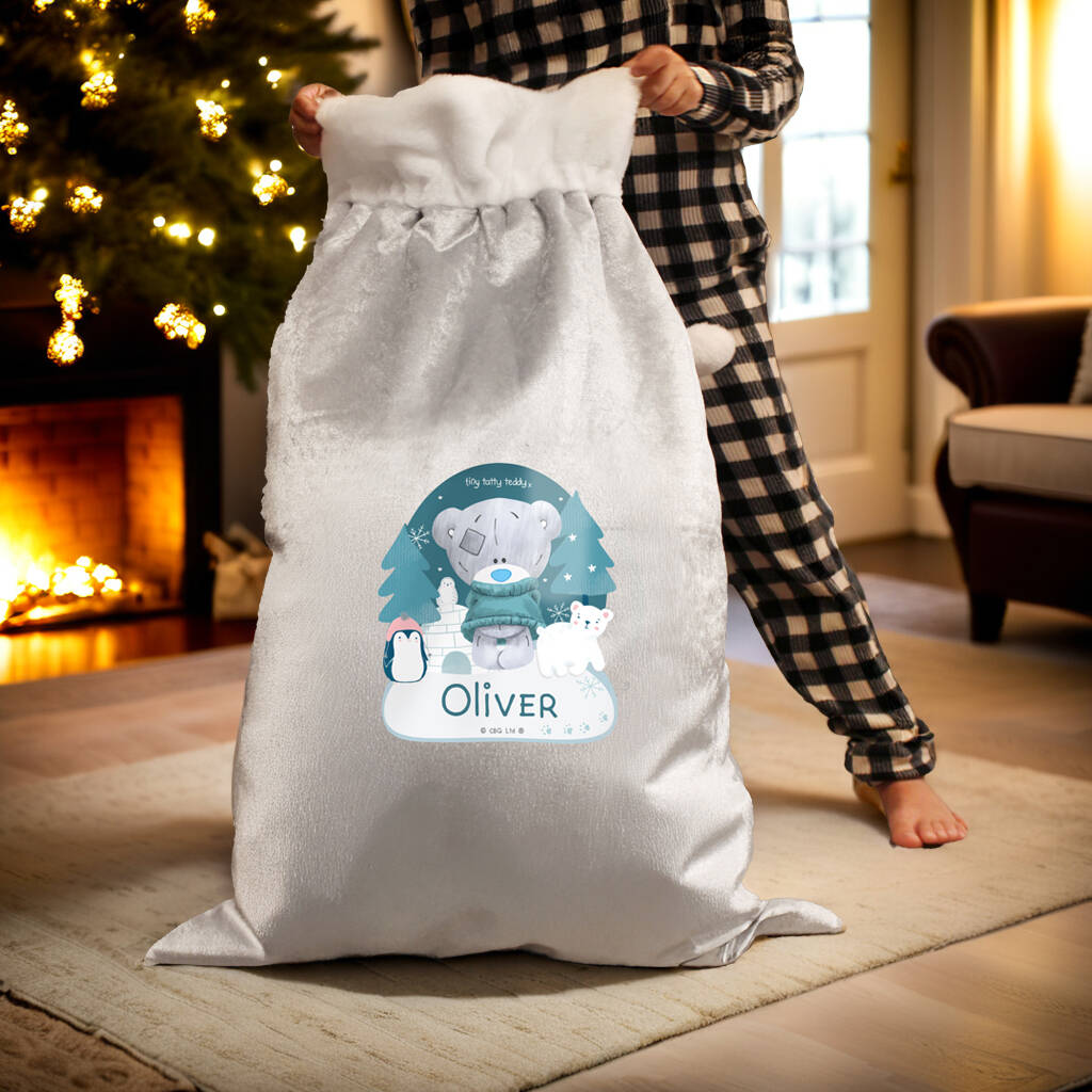 Tiny Tatty Teddy Luxury Pom Pom Silver Grey Sack
