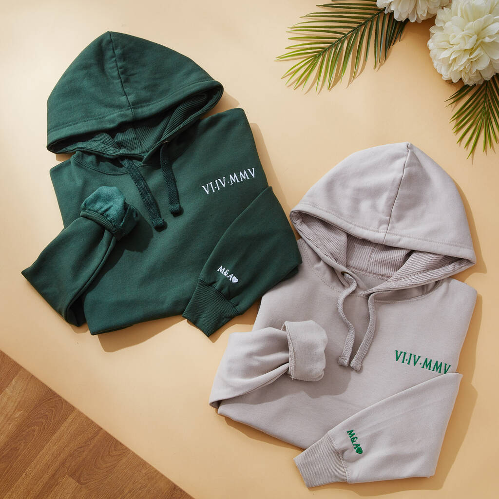 Celebrate a special date with our Personalised Roman Numeral Embroidered Hoodie, custom-stitched for a timeless and meaningful touch—perfect for anniversaries, Valentines, or everyday wear.
