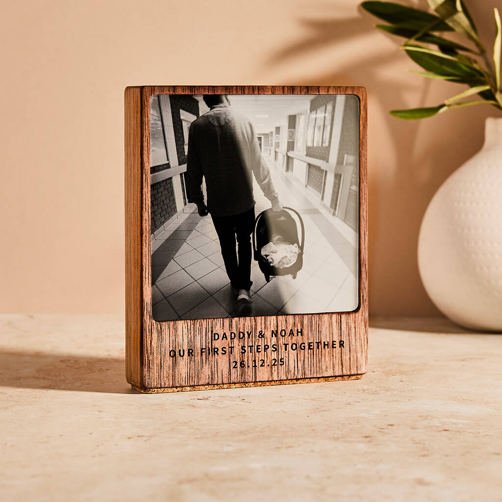 Our wood acrylic photo blocks make a thoughtful gift for a new daddy on Father's Day, capturing the memory of the day he became Dad.