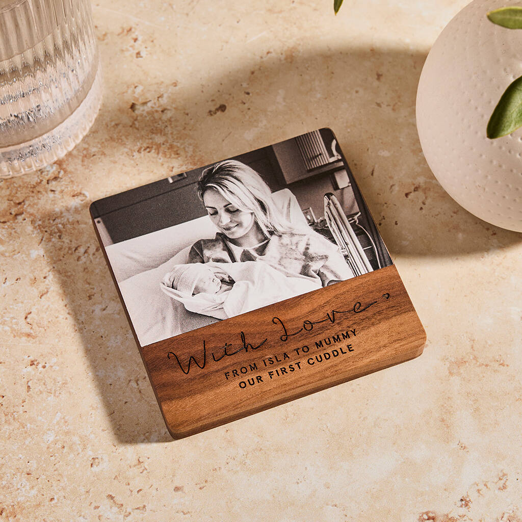 This beautiful personalised coaster with printed photo brings familiar faces or special memories to your desk or coffee table, making it feel like home.