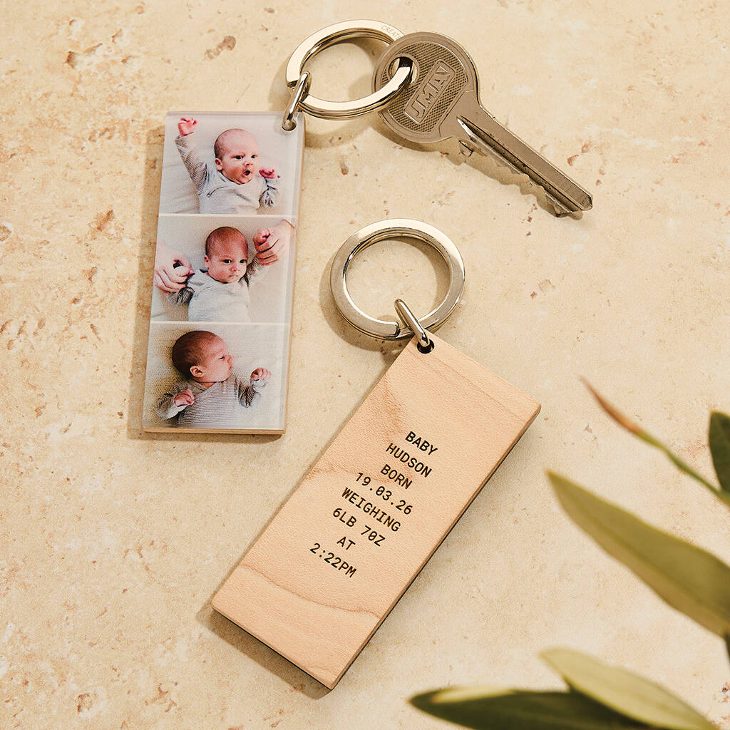 Wood And Acrylic Photobooth Keyring With Personalised Message