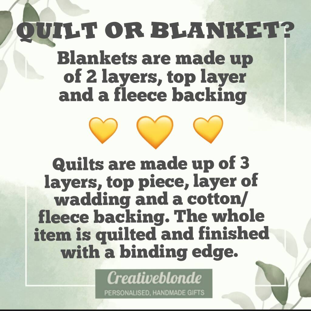 These very special blankets make precious keepsake memory gifts, all lovingly sewn together in a process where each square is fussy cut from your child's outgrown clothes, fused to a layer of luxury interfacing to stabilize and prolong the life of your quilt, each square is then pressed and joined to create this beautiful and unique patchwork quilt, super soft and cosy with all your treasured baby clothes.
