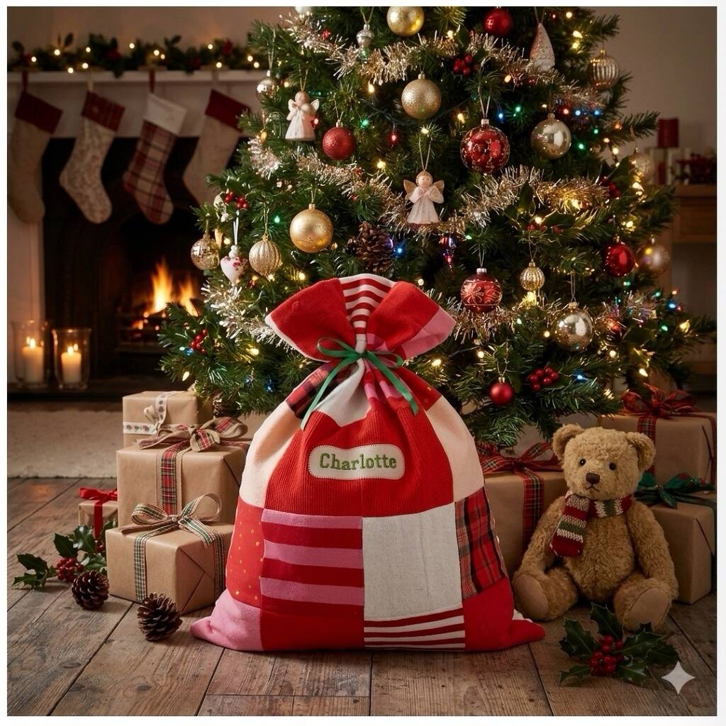 Memory Clothes Christmas Santa Sack, Fully Lined Keepsake Christmas Present Sack Made From Baby Clothes
