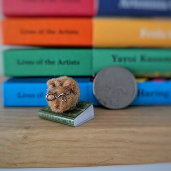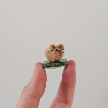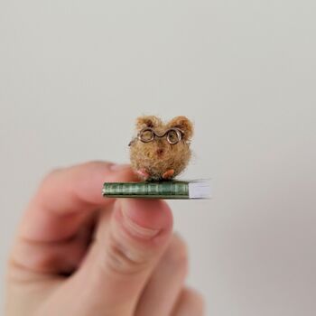 Mini Felt Needle Felt Mouse On A Book, Bookworm Present