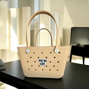 The amazing croc style tote is totally unique; waterproof, washable, non-tip and child/pet friendly.