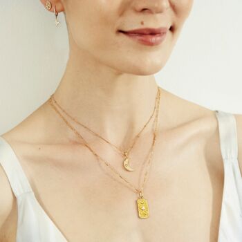 This necklace is crafted from 18ct Gold Vermeil with 2.5 microns of solid gold layered over sterling silver. Gold Vermeil is a gold coating that is laid over the top of a sterling silver base, which gives you the look of yellow or rose gold jewellery at a unsurpassable value. Vermeil provides long-lasting colour and shine.