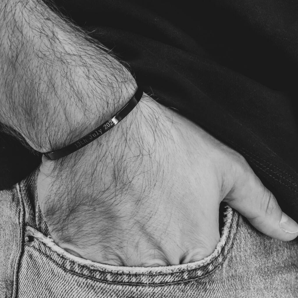 This personalised Black Cuff Bracelet is a sleek, meaningful accessory designed for everyday wear. Crafted from high-quality stainless steel with a polished Black finish, and is adjustable to mould to the wrist for a secure, comfortable fit. Customise it with a name, date, coordinates, or a short message to create a piece that’s truly personal. Its minimalist design makes it a versatile gift for him or her — ideal for birthdays, anniversaries, weddings, or Father’s Day. Hand-finished in Sussex and presented in eco-conscious, gift-ready packaging, this bracelet is a timeless keepsake made to be worn and cherished for years to come.