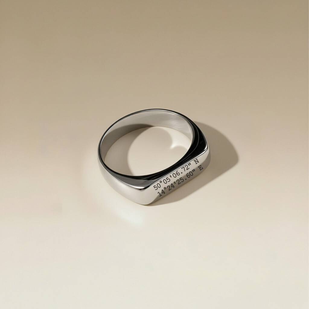 Personalised Signet Ring made from waterproof, hypoallergenic Stainless Steel. Engrave initials, dates or coordinates. A timeless, hand-finished gift from Sussex.