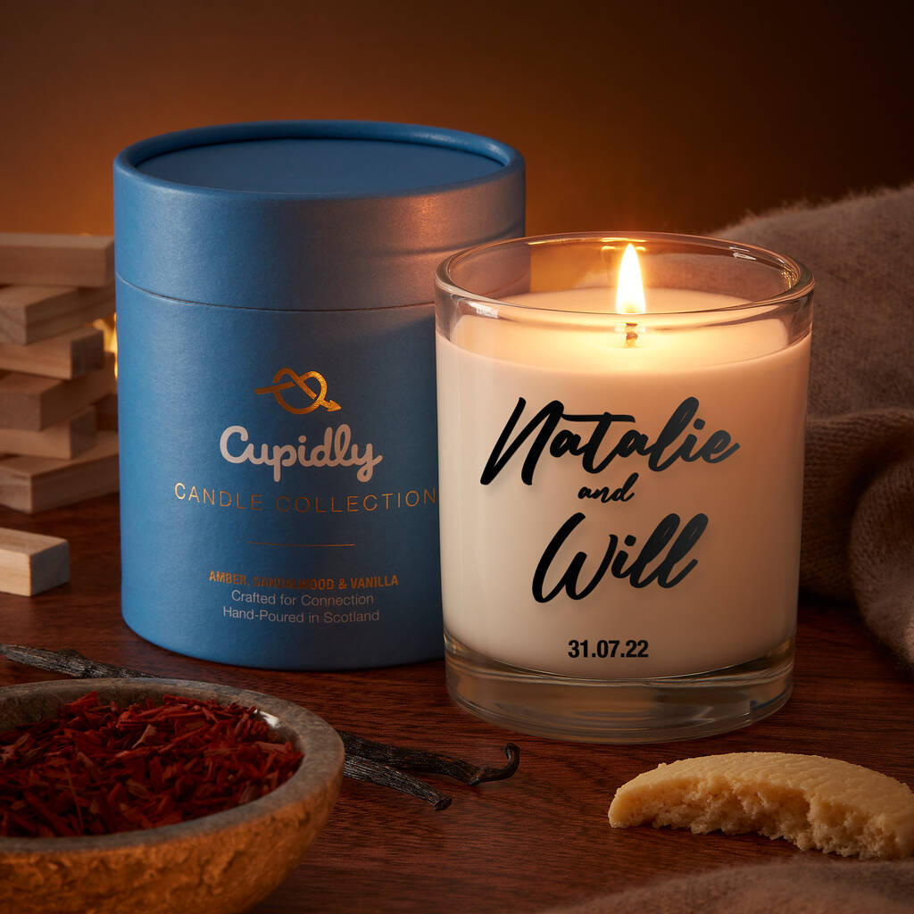 Personalised Scented Candle | Amber, Sandalwood, Vanilla | Custom Message Anniversary Or Date Night Gift | Connection Candle For Couples