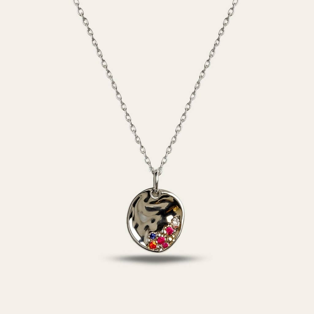 Dainty Silver Cluster Gemstone Necklace With Rainbow Gemstones