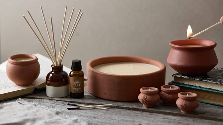 Our clay candles are hand thrown in the Dharavi Slums in Mumbai by Dalit Potters and hand filled by Dalit women.