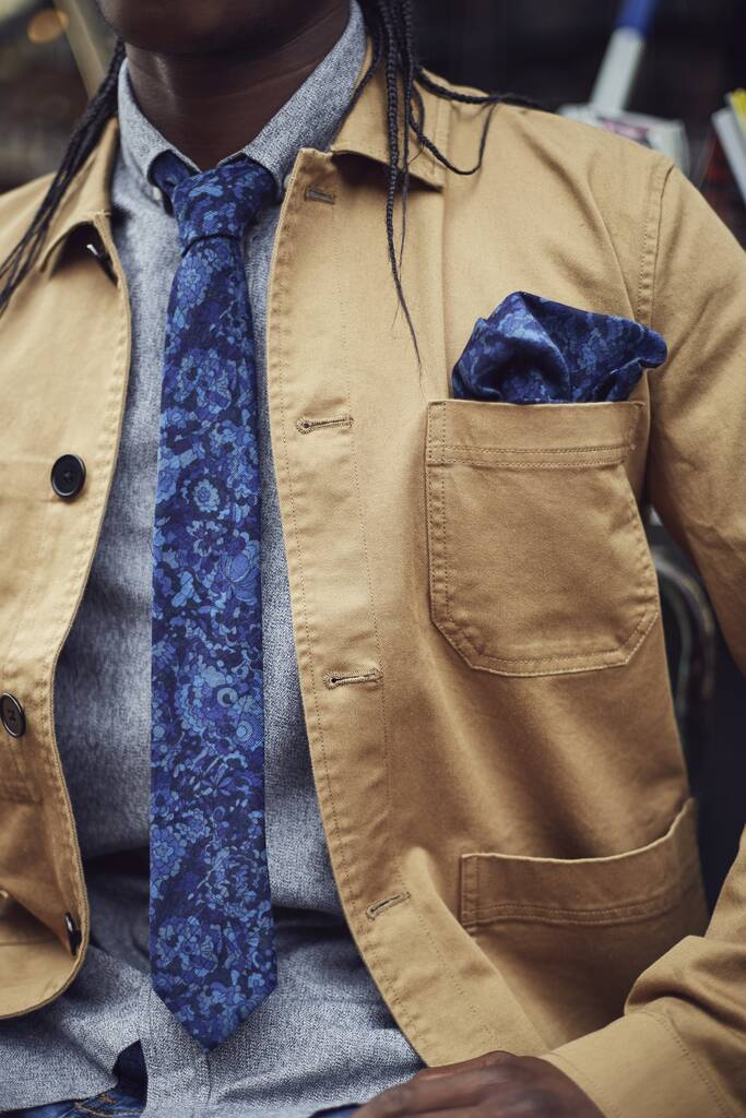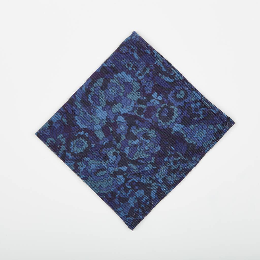 Dancys Mens Blue Retro Print Needlecord Pocket Square