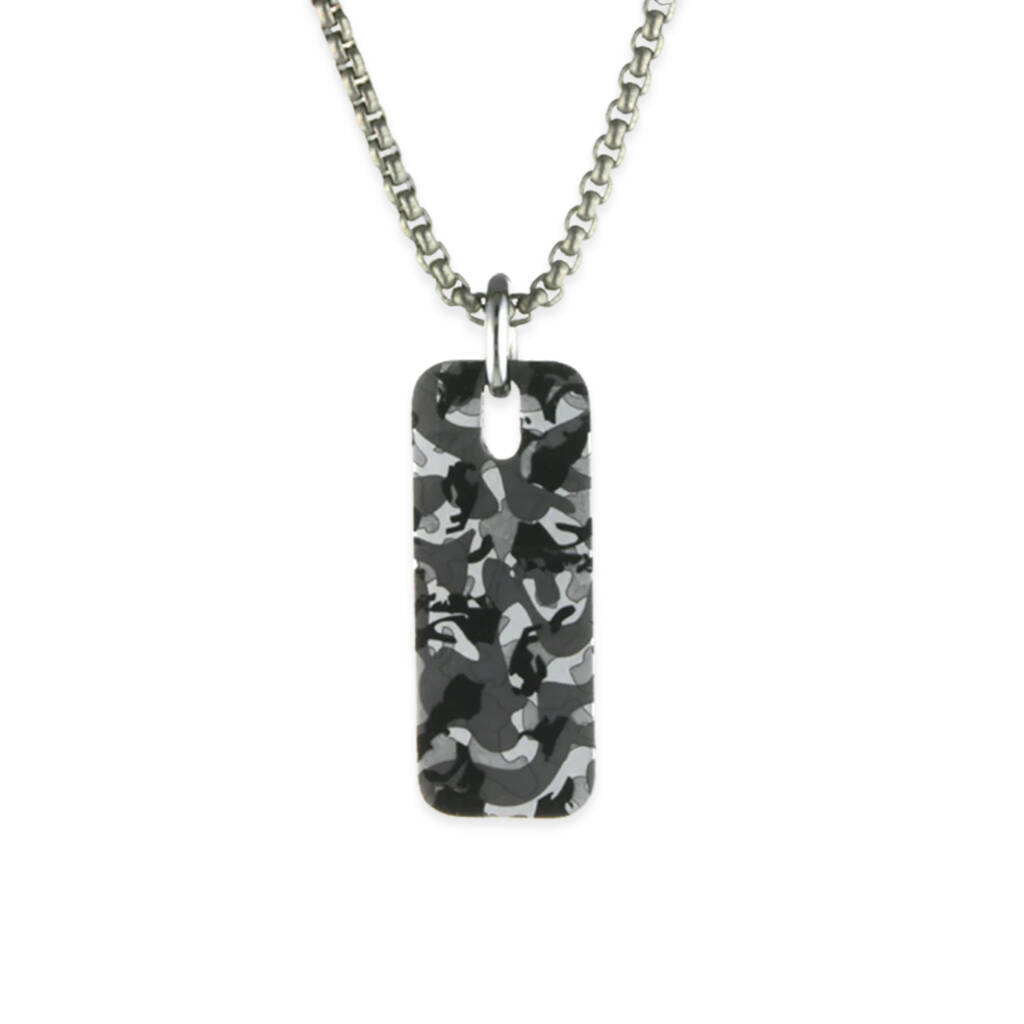 This titanium camouflage dog tag pendant combines contemporary masculine style with durable, lightweight material.