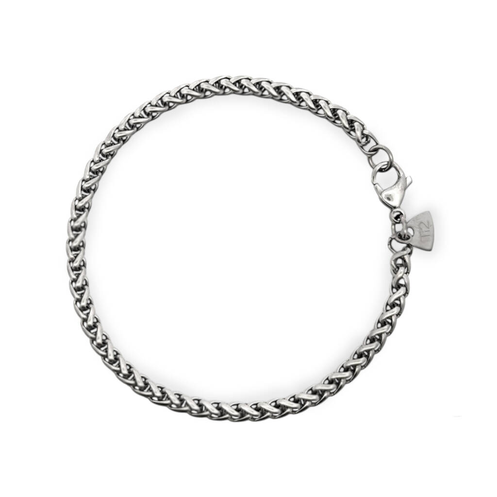 A sleek titanium wheat chain bracelet, lightweight, hypoallergenic, and crafted for everyday wear with a clean, polished finish and timeless appeal.