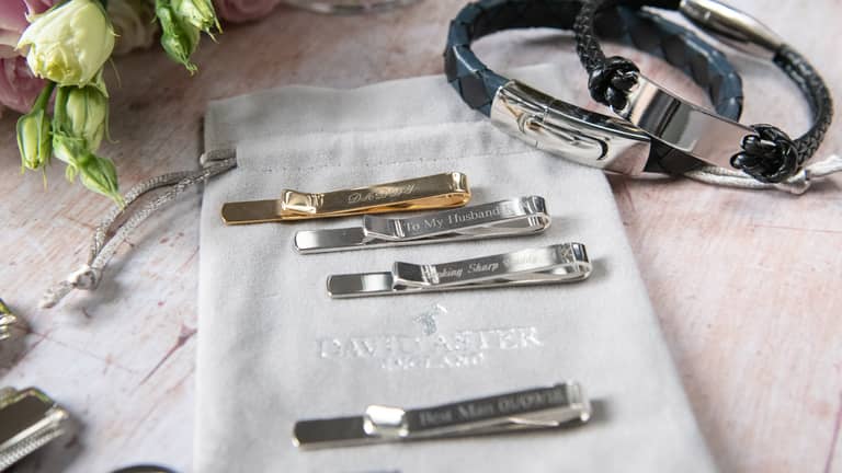 We can personalise many of our products too – meaning you can create a luxurious and unique gift that will be cherished for a lifetime. Why not add engraved initials to a key ring for your Dad, or a special message to a tie slide for your Husband-to-be to wear on your Wedding Day.