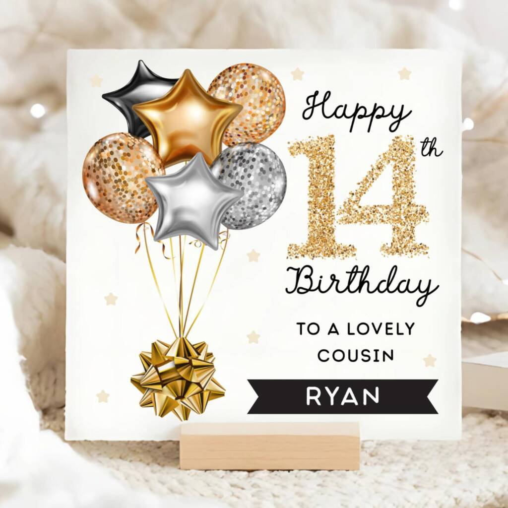 Cousin 14th Birthday Gold Black Personalised Card, 1 of 1