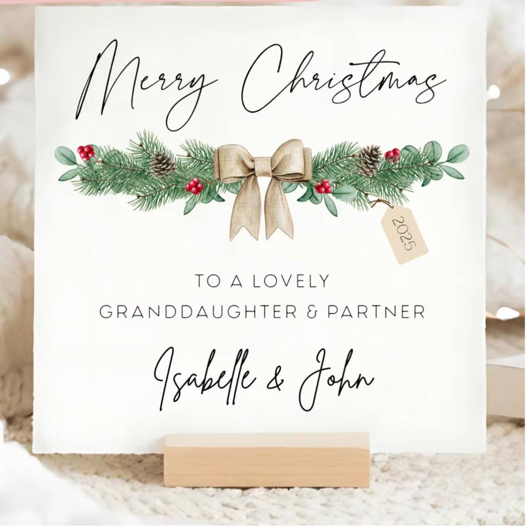 Granddaughter And Partner Personalised Wreath Christmas Card