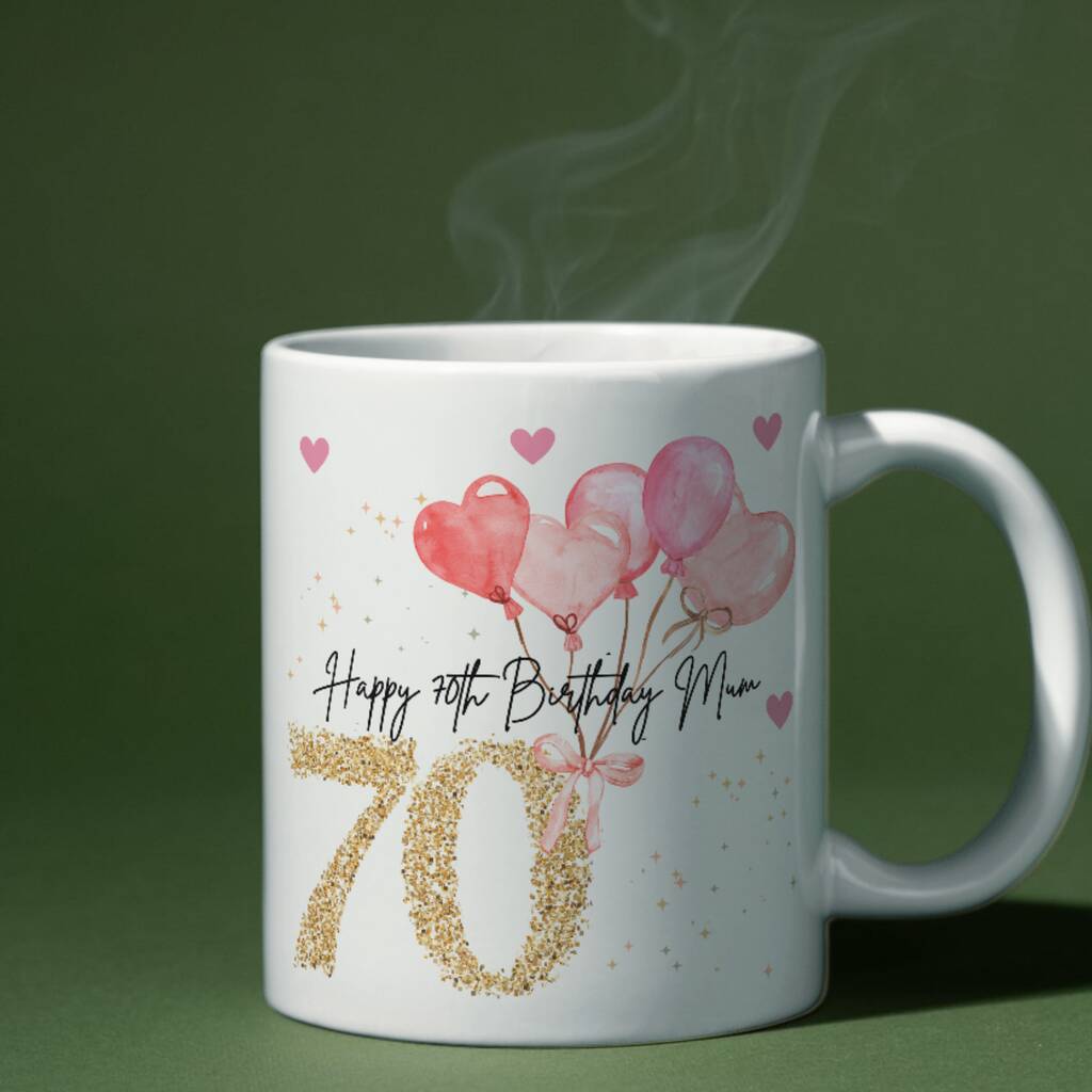 Mum 70th Birthday Pink Balloon Mug