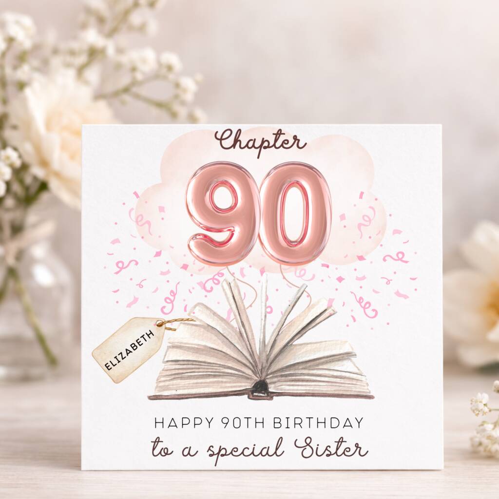Sister 90th Birthday Card Personalised – Luxury Chapter Design With Optional Gems