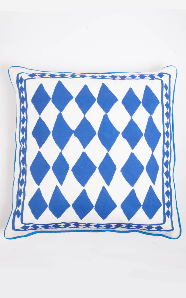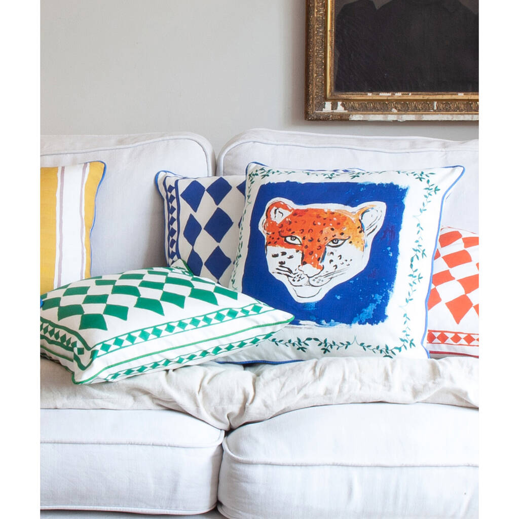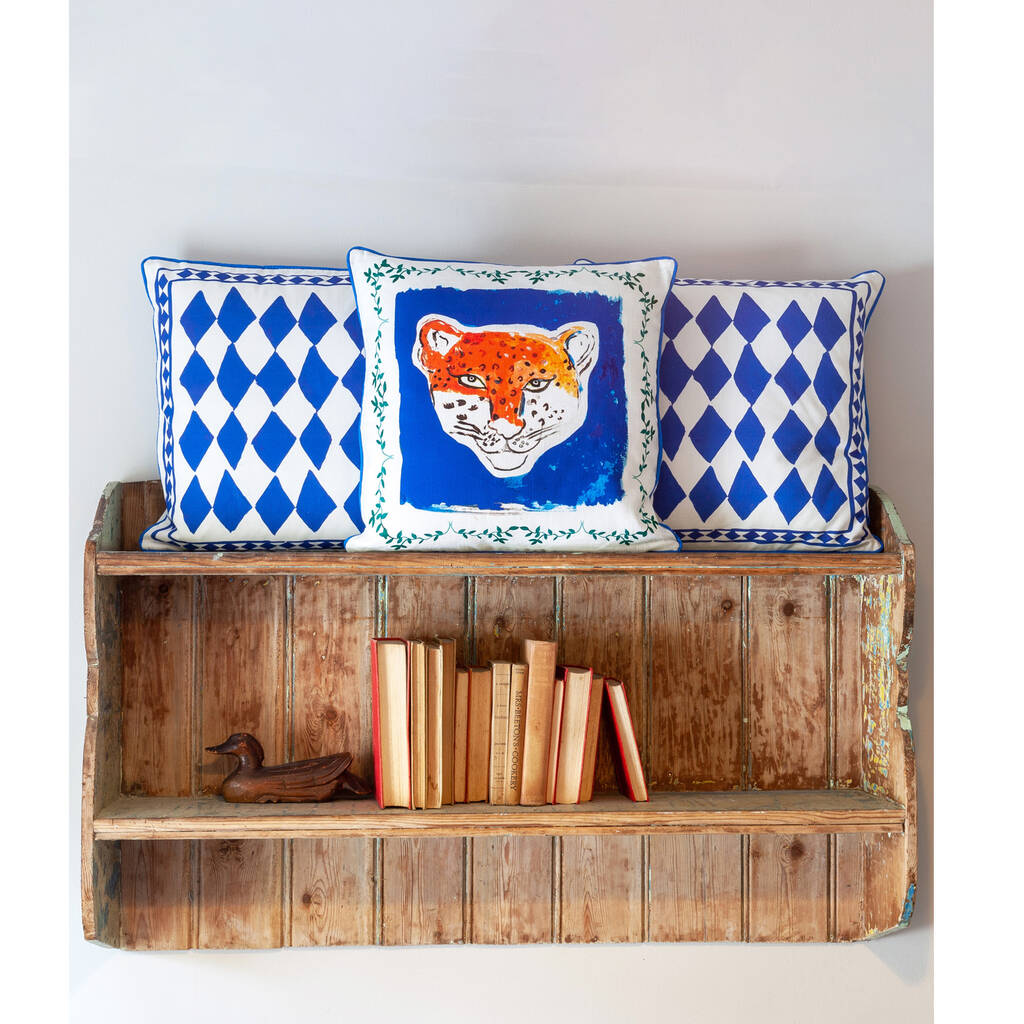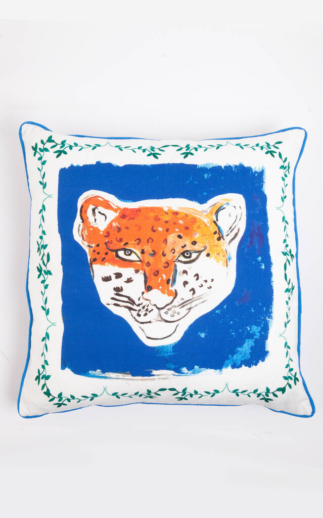 A beautiful hand painted "Tiger Head" print cushion cover with piping and a diamond reverse.